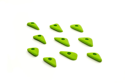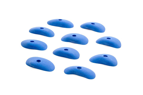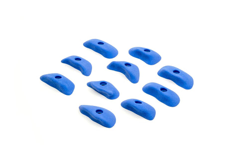 Small slopey Teagan-style plates and pinches that are great on aretes, volumes, and low angle walls. Designed to rotate for different difficulties and be comfortable on fingers and wrists.